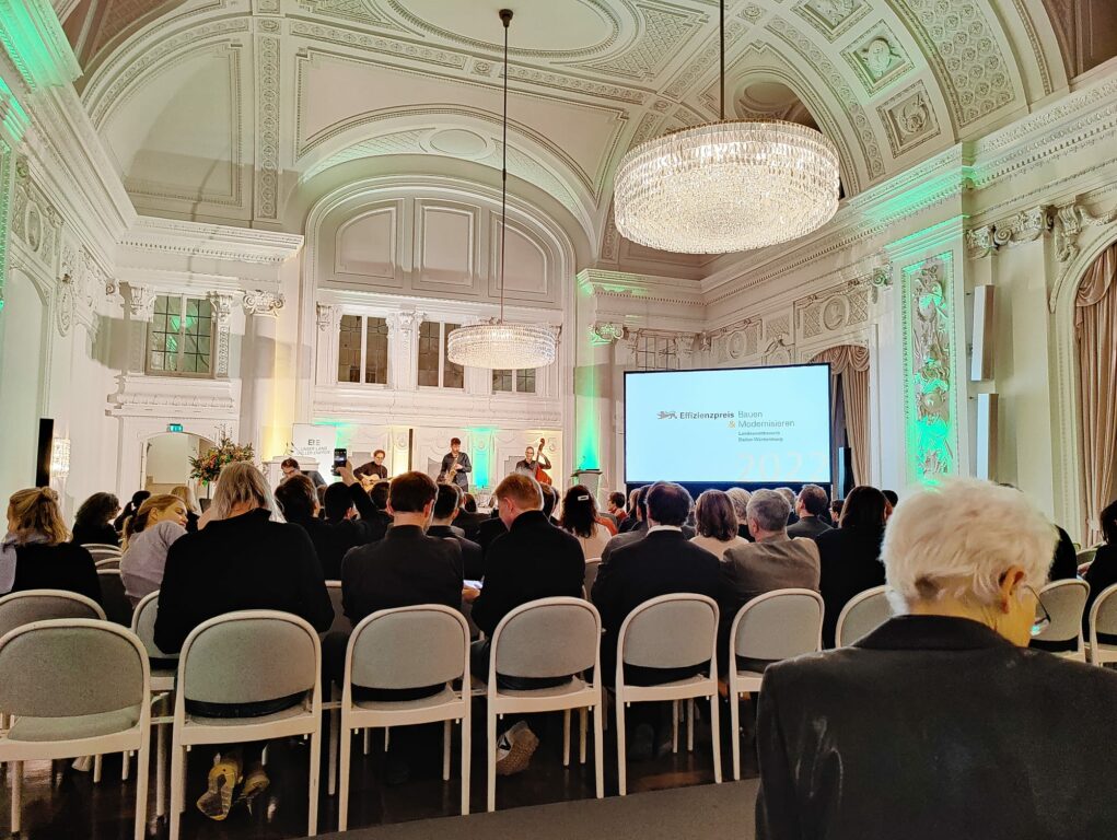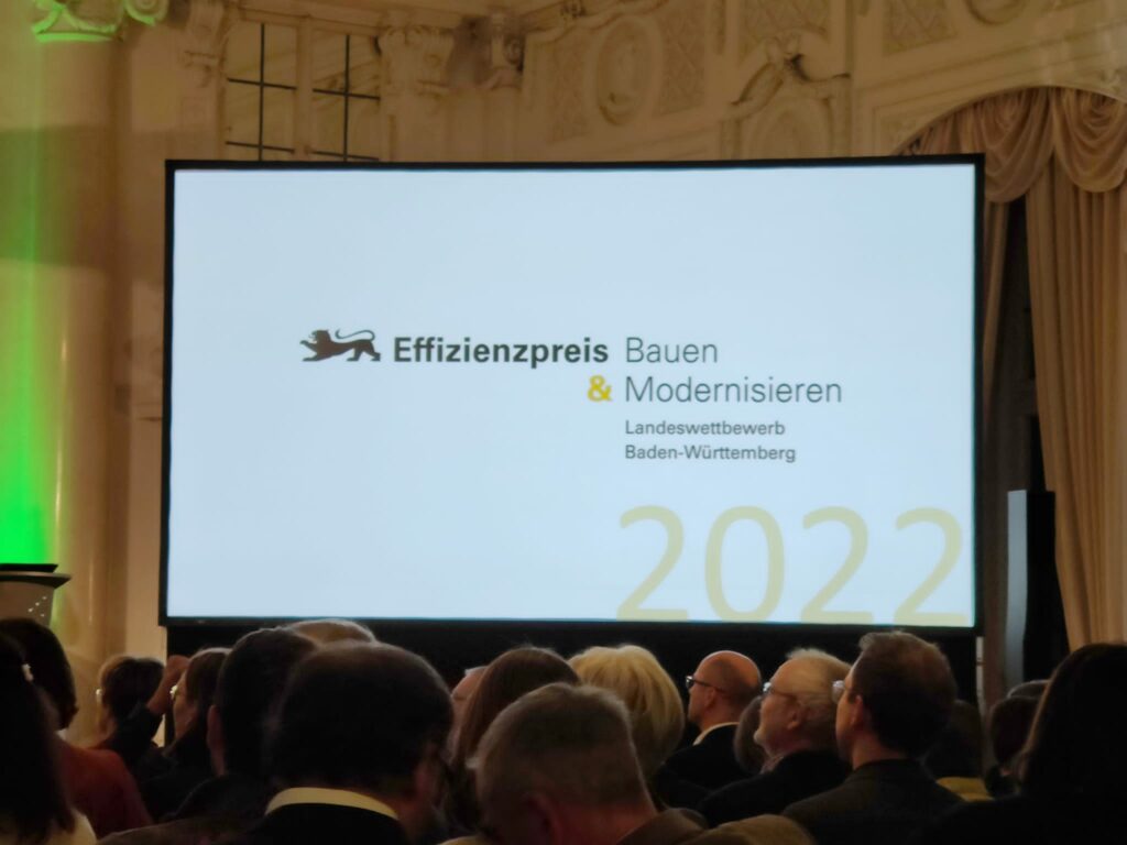Umwelt- und Energiestaatssekretär Andre Baumann hat am 08.12. in Stuttgart die Preisträgerinnen und Preisträger des Landeswettbewerbs „Effizienzpreis Bauen und Modernisieren 2022“ ausgezeichnet.